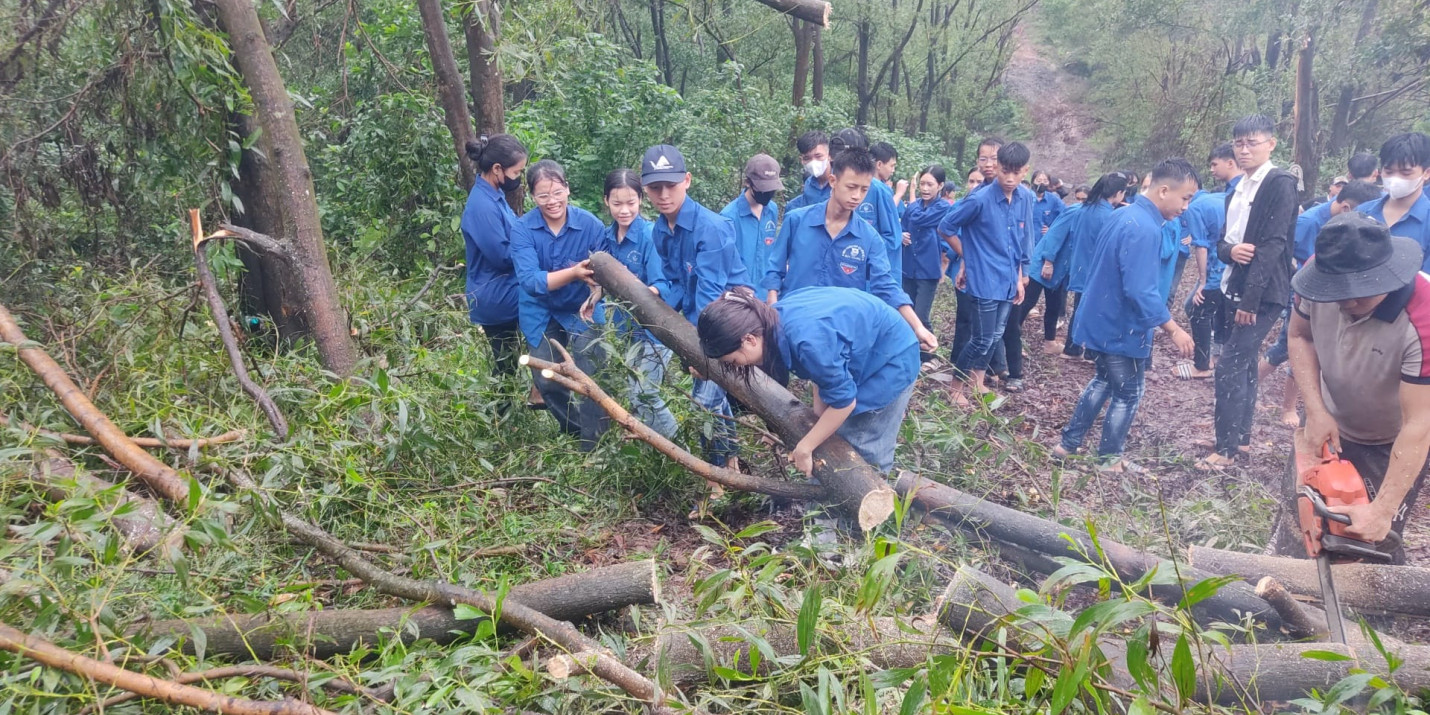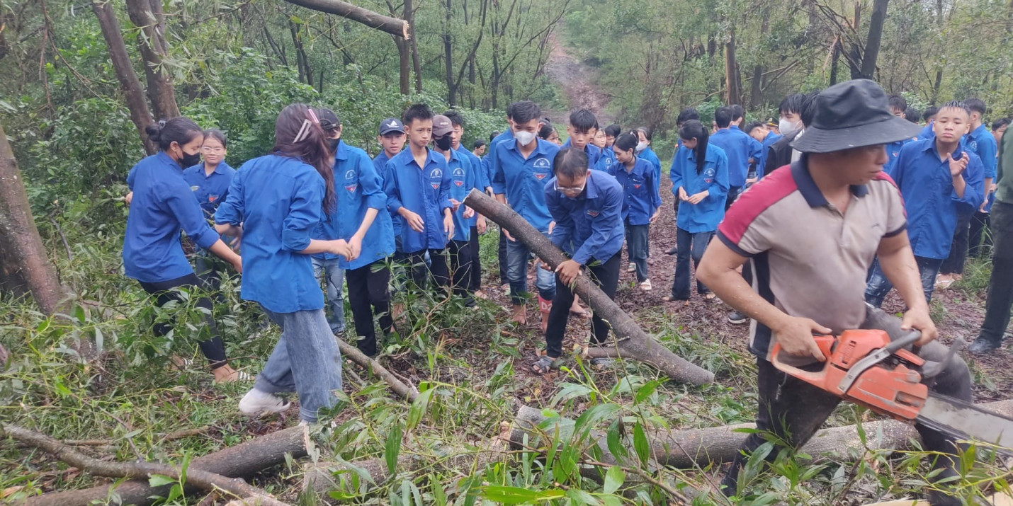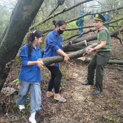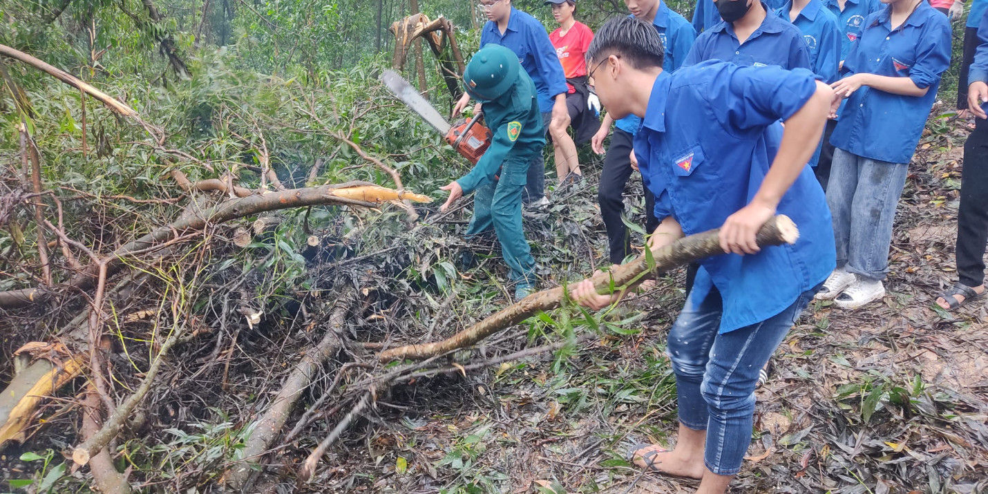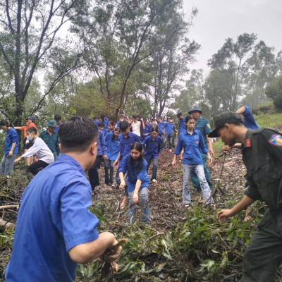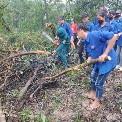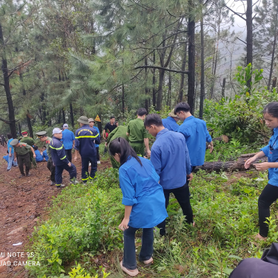 Sáng 22/9/2024 ĐTN trung tâm gồm 120ĐVTN đã tham gia: Lễ ra quân ngày “Chủ nhật xanh” dọn dẹp cây xanh gãy, đổ trên cung đường từ Thiền viện Trúc lâm Phượng Hoàng lên đỉnh núi Non Vua.