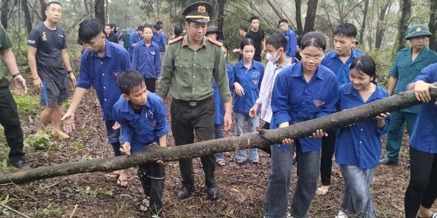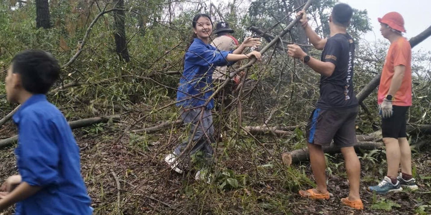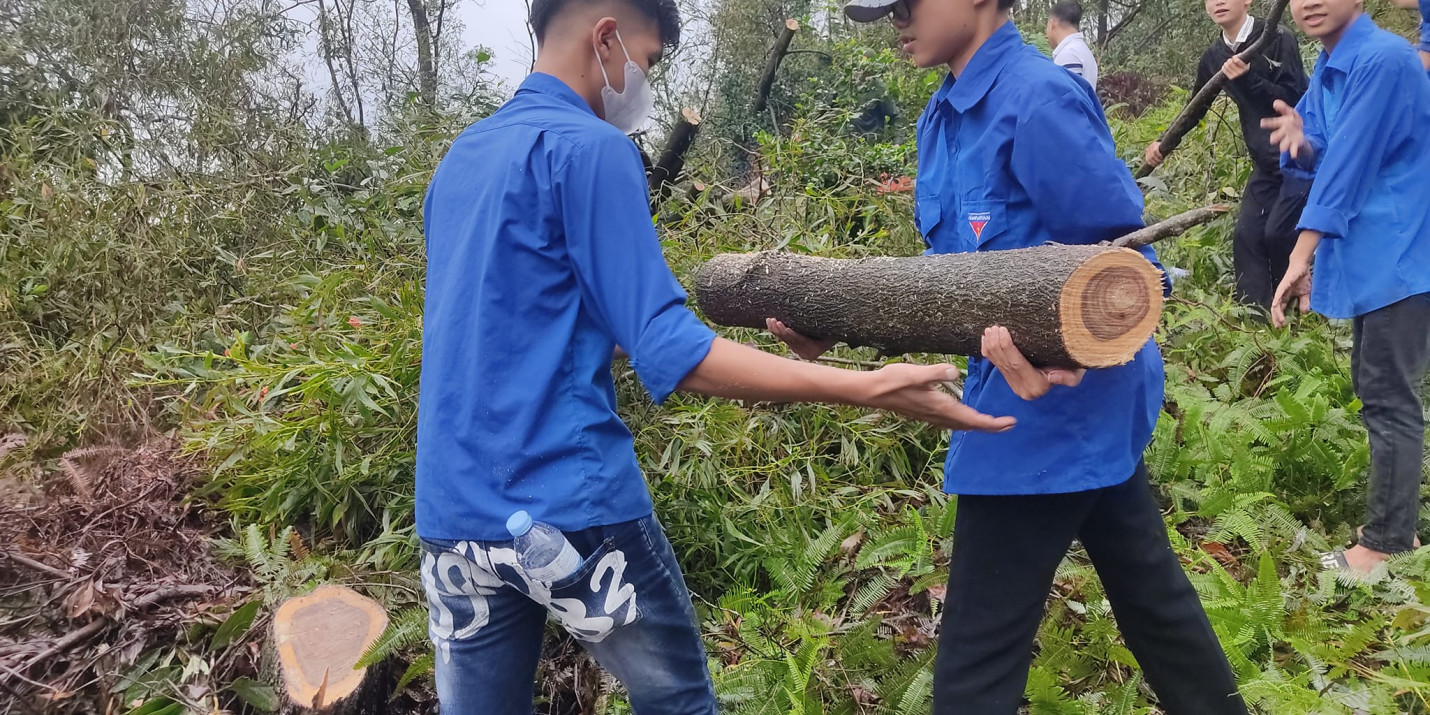 Sáng 22/9/2024 ĐTN trung tâm gồm 120ĐVTN đã tham gia: Lễ ra quân ngày “Chủ nhật xanh” dọn dẹp cây xanh gãy, đổ trên cung đường từ Thiền viện Trúc lâm Phượng Hoàng lên đỉnh núi Non Vua.