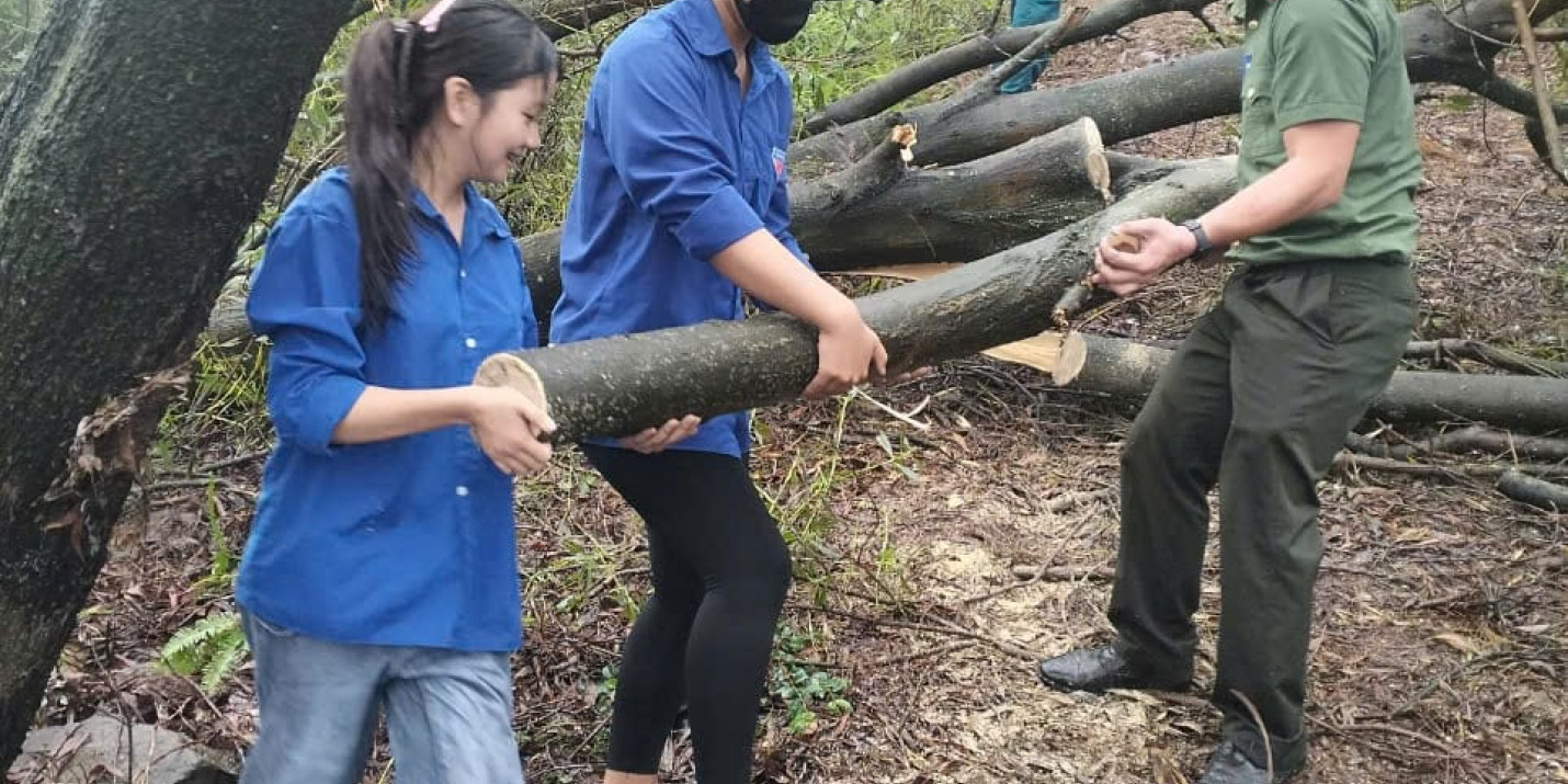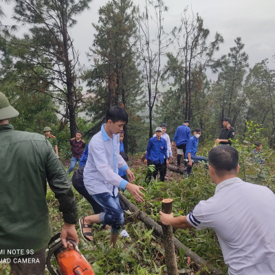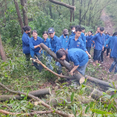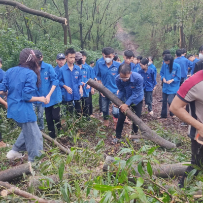 Sáng 22/9/2024 ĐTN trung tâm gồm 120ĐVTN đã tham gia: Lễ ra quân ngày “Chủ nhật xanh” dọn dẹp cây xanh gãy, đổ trên cung đường từ Thiền viện Trúc lâm Phượng Hoàng lên đỉnh núi Non Vua.